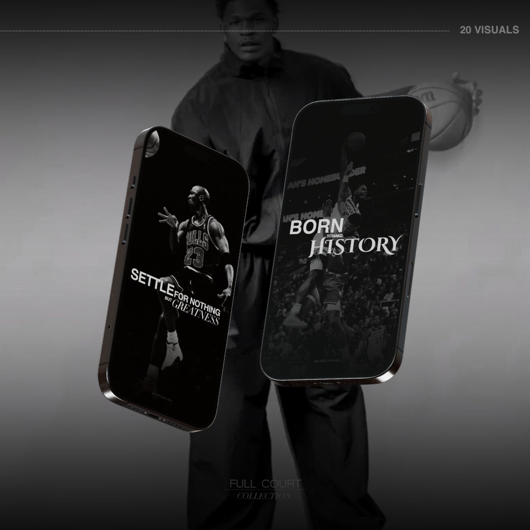 A collection of wallpapers featuring basketball stars, court-inspired visuals, and iconic moments from the game, designed to bring the energy and passion of basketball to your screen